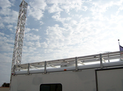 • Custom aluminum roof rack: A custom-fabricated aluminum roof rack makes it easy to mount your portable tower or additional gear.